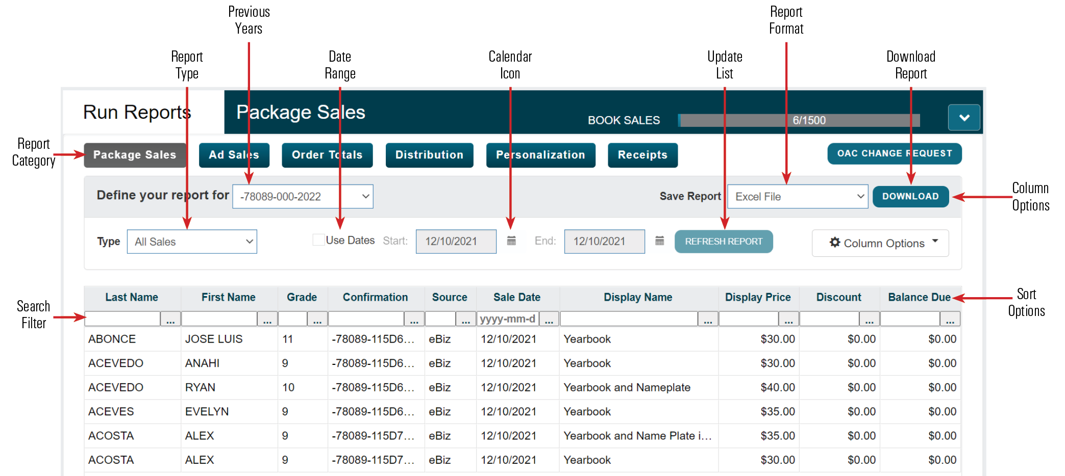 All Sales: Displays a count of packages sold and dollar totals.